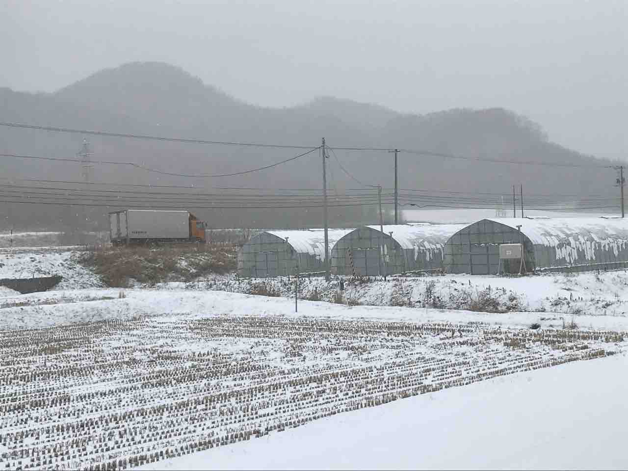 2019年11月21日 仕事が停滞しています(´;ω;`) ずーっと天気がこんな感じ…たまに陽は射しますが雪が降ったり止んだり(´;ω;`)ハウスの上に雪が乗っかってると外張りを上げる事も剥がす事もできません同じ平取町でも本町に行くと、全く雪はなくいい天気…